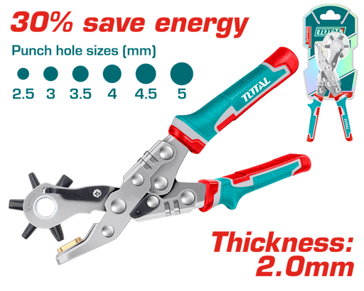 Punch hole sizes:2.5mm, 3mm, 3.5mm, 4mm, 4.5mm, 5mm30% Save energycomfortable PVC handlethickness:2.0mmPacked by Half double blister